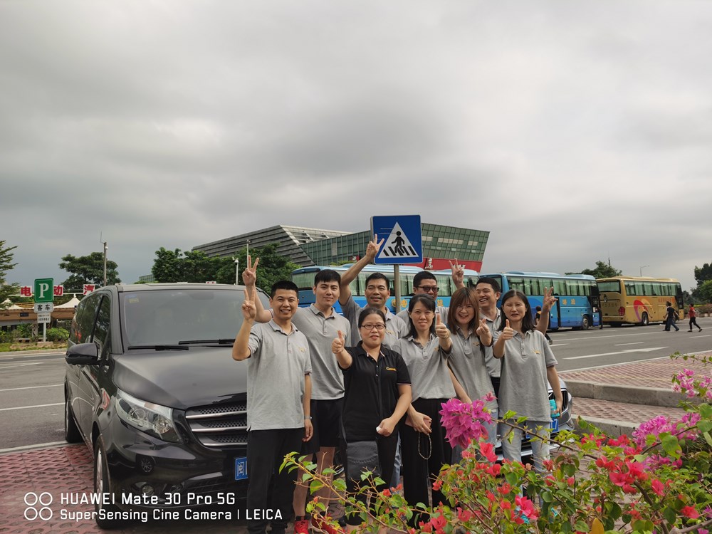 19日早上7点全体人员从公司出发,乘着公司的两部豪车,45分钟的车程,到了朴里服务站,顺便来一张合影。