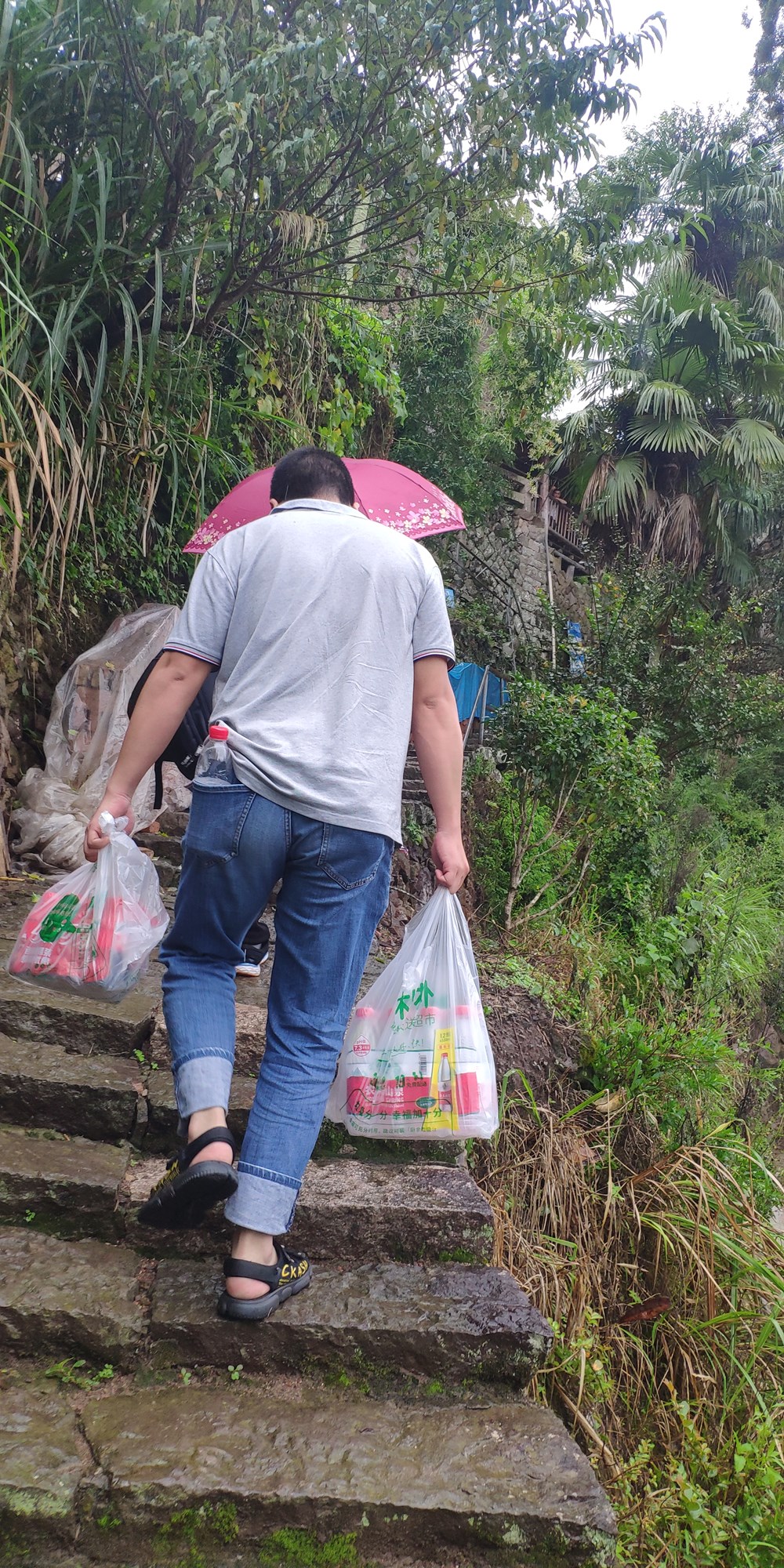 进去后就坐上观光车,一路开了十几分钟,到达观光车下车的位置,转坐民宿老板的小车,直达住宿的地方,下了车,上了台阶。