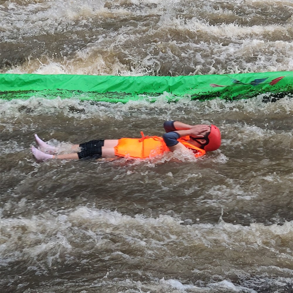午饭后,还在下着小雨,穿起一次性雨衣,准备去冲浪了。